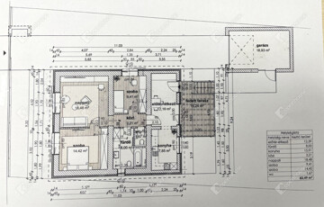 Minden helyiségben új burkolatok: nappali, előszoba és két hálószoba laminált padlóval, konyha, fürdő és mellékhelyiség kőburkolattal
