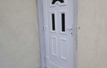 Az ajtó előtti betonozott területre asztal székekkel kitehető.