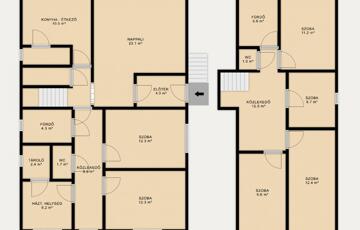 A tágas belső terek, a jól átgondolt elrendezés és a külön bejáratok révén ez az otthon kiváló lehetőségeket rejt mind családosok, mind befektetők számára.