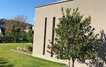 A ház déli fekvésű, így a napfény egész nap beragyogja a kertet és a belső tereket.