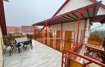Balatonfüred Arács városrészének főutcáján kínálunk megvételre egy 98 m² hasznos alapterületű, kétszintes tégla családi házat, mely természetben ikerház, de lakóterében teljesen önálló és elszeparált.