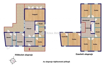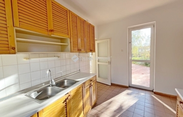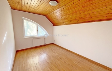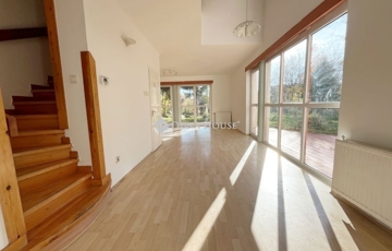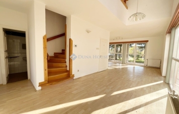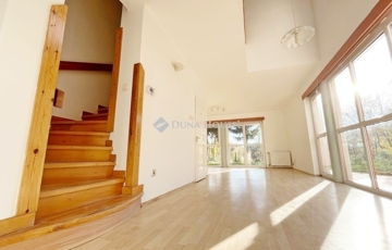 A nappali + hatszobás tágas, 180 m2-es ingatlan rendkívül jó elosztású. Az alsó szinten a nappali+étkező mellett helyet kapott egy szoba, konyha, kamra, háztartási helyiség, előszoba és egy fürdőszoba wc-vel. A lakás egy 430 m2-es kizárólagos használatú hangulatos telekrészen helyezkedik el, mely a nappaliból és a konyhából is megközelíthető.
