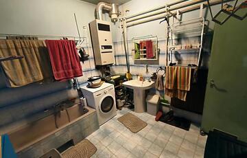 Emeleten: a szobákban, a nappaliban, az étkezőben és a kamrában linóleum, valamint padlószőnyeg, a konyhában és a fürdőszobában pedig kőburkolat van.
