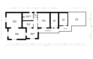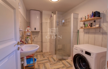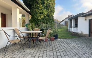 A ház 37 m2-es nappali-étkező, előszoba-étkező, konyha, fürdőszoba, wc, közlekedő helyiségekből áll. További hálószoba leválasztással kialakítható, illetve a verandáról nyíló jelenleg tároló funkciót ellátó helyiség is alkalmas lehet szoba kialakítására. Az épülethez csatlakozik egy tároló és egy 20 m2-es terasz, illetve a ház mellett található egy külön épület, fedett kiülő és pince. A kert gondozott, öntözése ásott kútból lehetséges. Ár: 82 MFt