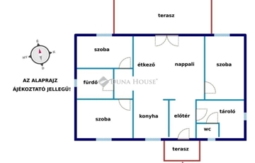 A lakás helyiségeit alább részletezem:Előtér: 4.2 m2Konyha-étkező: 13.9 m2Nappali: 17.7 m2Szoba 1: 9.3 m2Szoba 2: 10.3 m2Szoba 3: 12.2 m2Fürdőszoba: 5.2 m2WC: 1.3 m2Tároló: 7.0 m2Közlekedő : 2.2 m2Előterasz: 3.9 m2Terasz: 17.3 m2