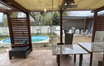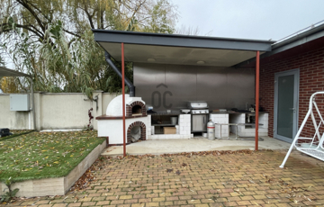 - a kertben megtalálható egy hőszivattyúval ellátott fűthető medence, továbbá egy fedett kültéri konyha kemencével, mosogatóval