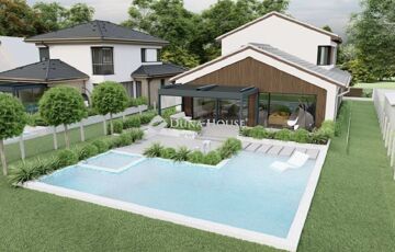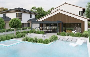 Kulcsrakész állapot tartalma, felszereltsége: Beltéri ajtók 150.000 HUF értékben, hideg-és melegburkolatok, azok szakszerű lehelyezése 8000 HUF/négyzetméteres értékhatárig, villanyszerelvények egyeztetett árig + alap riasztó rendszer, szaniterek egyeztetett árig. Udvar tereprendezése, azon belül térburkolás a garázsbejárónál és az ajtóban. (A látványterven szereplő medence kiépítése extra anyagi vonzattal bír).