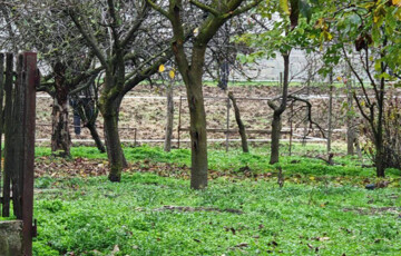A kertben konyhakerti növények vannak ültetve, termő gyümölcsfák és bokrok: alma, barack, meggy, szilva, dió, málna, szeder, eper, büszke, szőlőlugas.