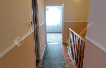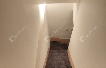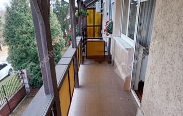 Földszint: előszoba, külön WC, konyha kamrával, tágas nappali; a bejárat előtt nagy terasz, ahonnan néhány lépcsőn keresztül, szintkülönbséggel juthatunk a gondozott kertbe. A nappalihoz nagy erkély tartozik..