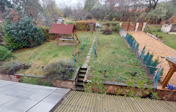 Oroszlány egyik legkedveltebb, csendes és rendezett részén kínálom megvételre ezt a 96 m²-es, nagyblokkos építésű, tégla válaszfalas sorházi lakást, amelyhez 233 m²-es, gondozott saját kert tartozik.