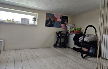 2022-ben a nappali fölött egy 31 m2-es galéria került kialakításra lucfenyőből.