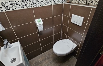 Az ingatlan minden részlete a kényelmet és az időtálló eleganciát szolgálja. A Porotherm 30-as téglából épült külső falak 15 cm-es szigetelést kaptak. A szomszéddal közös falra külön figyelmet fordítottak, ide kiváló, szintén 30-as jó hang- és hőszigetelésű tégla falazat került.