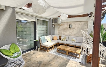 Képzeld el, ahogy egy nyári reggelen kilépsz a nappaliból a tágas, 37 m²-es fedett teraszra. A madarak csicseregnek, a kert zöldje nyugalmat áraszt, kezedben egy csésze kávé. Ez a pillanat a tiéd – és mostantól minden reggeled ilyen lehet.
