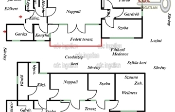 Az előszobába érkezünk, mellette a 35 m2-es, duplagarázs elektromos töltővel és rögtön jobbra a kertkapcsolatos, tágas, nagyon világos, gépesített konyha, egyenesen haladva a 34 m2-es, déli fekvésű, csupa napfényes, 15 m2-es fedett terasszal egybe nyitható, közvetlen kertkapcsolatos nappaliba érkezünk, majd a közlekedőből nyílik a déli fekvésű, nagyon világos, kertre néző szülöi hálószoba, mellette a gardrób szoba és a végén a nagy méretű, ablakos, fő fürdőszoba. A bejárattól balra lehet az emeletre felmenni, ott egy tágas előtérbe érkezünk, rögtön jobbra fürdőszoba, szemben déli fekvésű hálószoba gardróbszobával, terasz kijárattal, nappali és egy déli fekvésű hálószoba, nagy terasz és wellness részleg, szaunával található. A kert csodaszép, parkosított, füvesített, kertésszel karbantartott, örökzöldek, bokrok cserjék, juharfa, fenyőfa, kecskerágó, rózsák, virágzó növények színkavalkádja, sziklakert csobogóval, automata öntözőrendszerrel, ami fúrt kútról működtetett és egy 150 cm mély, 8X4 méteres fűtött medencével. Olyan igényes tulajdonost keresünk akinek fontos, hogy hatalmas, elszeparált varázslatos energiákkal teli, csodálatos kertje és különlegesen praktikus otthona legyen. Ideális családoknak vagy több generáció együtt élésére is kényelmes, minőségi életet biztosít.