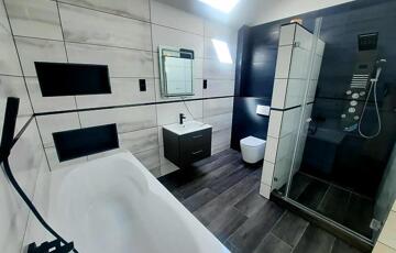- fürdőszoba zuhanyzóval és fürdőkáddal