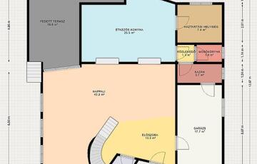 A konyhából jutunk ki egy 20 M2-es tágas teraszra. A telken található 1 állásos garázs.