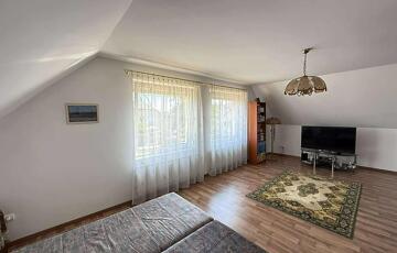 A házban, nagy és világos amerikai konyhás nappali, 3 szoba, közlekedő és egy külön mellékhelyiség, dupla komfortos.
