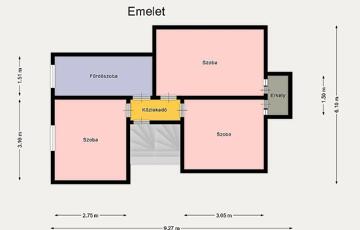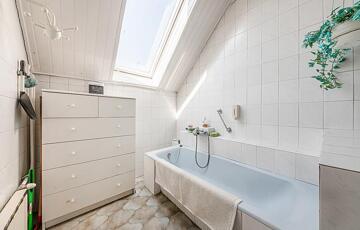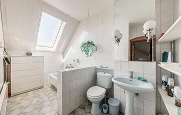 Az emeleten találunk még egy káddal felszerelt fürdőszobát, aminek köszönhetően az ingatlan duplakomfortos.