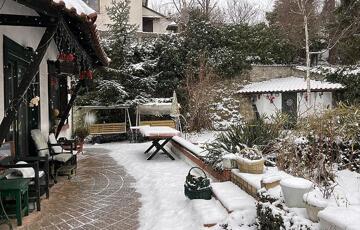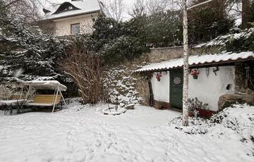 A kertben található egy 12 négyzetméteres téli kert és halastó is!