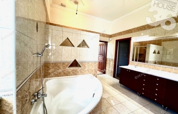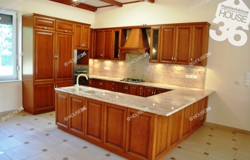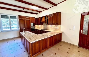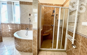 Tágas élettér: 5 szoba, két fürdőszoba (márvány burkolatú épített fürdő), nappali-konyha-étkező egyben.