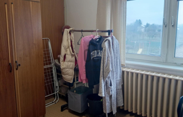 Felújított szoba: az egyik helyiség teljeskörűen megújult ( új burkolat, modern, 3 rétegű hangszigetelt nyílászáró, valamint új villanyvezetékek kerültek beépítésre)