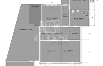 Tárolásra a nappali alatt kialakított 13,5m2-es pince kiváló lehetőséget ad.