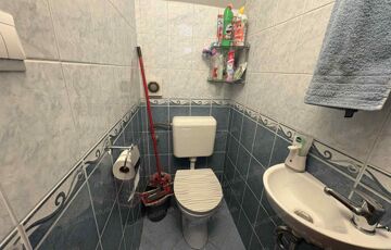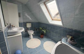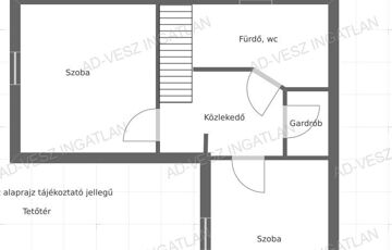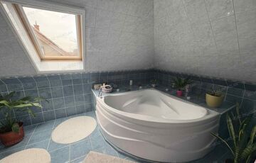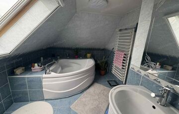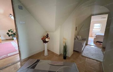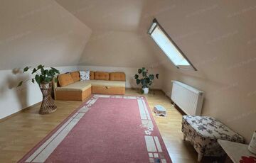 A tetőtérben további 2 hálószoba, fürdőszoba wc-vel, gardrób szoba, és közlekedő található.