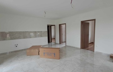 A 2. lakás lakóterülete 76,18 m2, melyben előszoba (4,38 m2), nappali (18,52 m2), konyha-étkező (8,48 m2), közlekedő (1,10 m2), 1. szoba (11,05 m2), 2. szoba (10,30 m2), 3. szoba (10,64), fürdőszoba (5,13 m2), WC (1,17 m2), és tároló (5,46 m2) található, valamint egy előlépcső (4,16 m2), és egy terasz (11,70 m2) kapcsolódik a nappalihoz.
