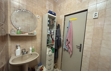 Tágas fürdőszoba,- burkolatokat 2020-ban cserélték.