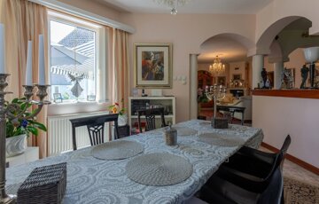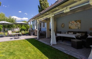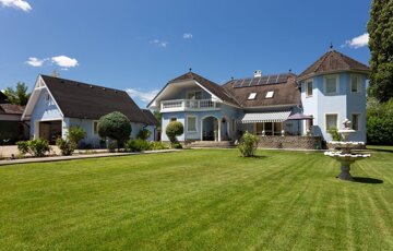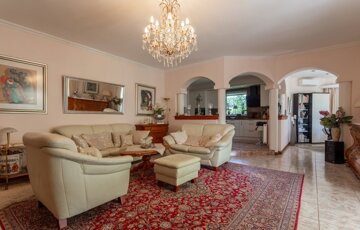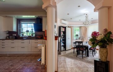 A 280 m²-es, kiváló állapotban lévő, napfényes lakóingatlan egy 1762 m²-es, parkosított telken helyezkedik el, medencével, borospincével és duplagarázzsal kiegészülve.