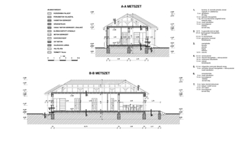 A tartószerkezeti falak Porotherm P30N+F téglából, betonkoszorúval, fa födémes tetőszerkezettel készülnek. A lábazat 10 cm polisztirol lépésálló, a homlokzatok 10cm-es Austrotherm Grafitos, a vízszintes födém 25 cm ásványgyapot szigeteléssel lesz ellátva.
