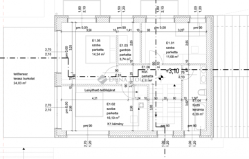 Emelet:- 3 szoba terasszal és erkéllyel / 23 m2-es/, ahonnan hangulatos kilátás tárul elénk- Fürdőszoba
