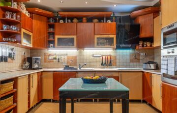A földszinten padlófűtés, az emeleten radiátoros fűtés működik. A meleg előállításáról gáz- és vegyestüzelésű kazán gondoskodik, továbbá lehetőség van kandalló beépítésére is. Az átmeneti időszakokban hűtő-fűtő klíma biztosítja a kellemes hőérzetet. A belső terek minőségi burkolatokkal – olasz és spanyol járólapokkal, egyedi faldekorációkkal – rendelkeznek.