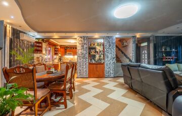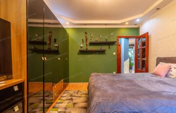 Az új ház földszintjén előtér, nagy méretű nappali étkezővel, hatalmas konyha, hálószoba, továbbá egy duplamosdós, sarokkádas fürdőszoba és külön WC kapott helyet. A nappaliból közvetlen kijárat nyílik a 28 m²-es fedett teraszra. Az emeleten egy nappali, két hálószoba, gardrób, valamint újabb fürdőszoba és WC található, melyhez erkély is kapcsolódik gyönyörű kertre néző kilátással.