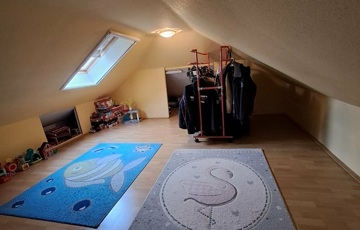 Lakóterülete 93 m2, melyben előszoba, konyha-étkező-nappali, kamra, 3 szoba + 1 szoba a tetőtérben, fürdőszoba és WC található.