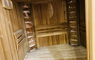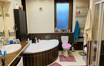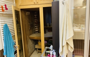 Otthoni SPA: Két fürdőszoba, melyből az egyik egy komplett wellness részleg szaunával, sarokkáddal és zuhanyzóval.