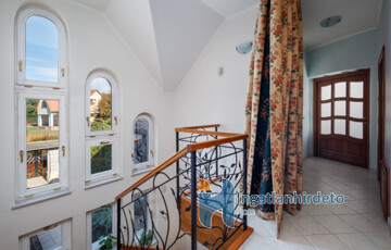 Elhelyezkedése: Belterület Tájolása: Dél-nyugai tájolású Állapota: Használt - felújított Komfort besorolása: Luxus komfortos Építési éve: 2001 Alapterülete: 334 m2 Telekterülete: 868 m2 Szobák száma: 4 + 3 szoba Felújított: Felújított Felújítás éve: 2016 Közművek: Gáz, Víz, Villany, Csatorna Fűtés módja: Gáz, Fa Fűtés típusa: Kandalló, Napkollektor, Padlófűtés Homlokzat állapot: Újszerű Építési mód: Tégla Tető formája: Magas Tető anyaga: Cserép Parkolási lehetőség: Garázsban Kilátás: Udvari kilátás, Tóra nyíló kilátás Napelem: Van Teljesítmény(kW): 1,5 Jellemzői: Alacsony rezsi, Csendes környék, Jó közlekedés, Két bejárat, Ikergarázs, Légkondicionáló, Étkező, Udvari terasz, Beépíthető tetőtér, Beépített szekrény, Beépített konyhabútor, Kert, Kerítés, Ipari áram, Riasztó, Parketta burkolat, Egyedi vízóra , Zöldterület, Jó közbiztonság Energetikai besorolás: C Egyéb jellemzők: Pince Tv, Internet: Kábeltévé, Internet, Vezetékes telefon Közelben: Iskola, Óvoda, Autóbuszállomás, Orvosi rendelő, Bolt, Gyógyszertár, Postahivatal, Vendéglátó egység Rezsi költség(Ft): 50000 Terhelések: Tehermentes ingatlan Eladásra vonatkozó információk: Azonnal beköltözhető