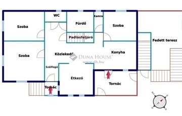 - Főépület: Kétszintes családi ház, két különálló lakrésszel