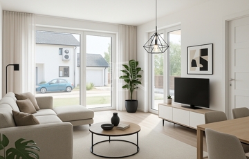 Gyönyörű napos tágas, világos nappali-étkező-konyha egyben, amely a családi együttlétek színtere lehet.