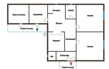 A nyári konyhát - egy ajtó beépítésével a válaszfalba - könnyedén a lakótérbe lehet vonni és egy szobával többet tudunk kihozni az ingatlanból.