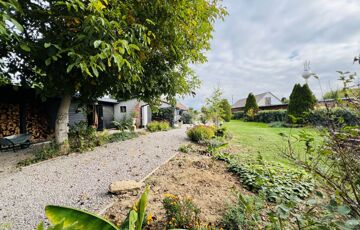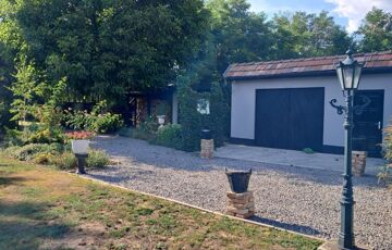 Telek: Az udvar tágas és gondozott, virágokkal, cserjékkel és bokrokkal díszített, teljes egészében körbekerített terület, amelyet rendezett szegéllyel határolt járda tesz még ápoltabbá. A hatalmas kert számtalan lehetőséget kínál a szabadidő eltöltésére: ideális hely a pihenéshez, grillezéshez, kertészkedéshez vagy akár kisebb gazdálkodáshoz is. A telken dupla garázs és fatároló található, a hátsó bejáratnak köszönhetően pedig az ingatlan autóval erről az oldalról is kényelmesen megközelíthető, lehetővé teszi lakókocsi beállását is, így a terület vendégek fogadására vagy hosszabb tartózkodásra is kiválóan alkalmas. A kert hátsó részén gondosan ápolt gyümölcsfák sorakoznak, tovább fokozva a természetközeli, vidéki atmoszférát.
