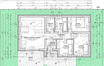 L1 (első, utcafronti ház) 81,78 nm lakótér + 15,42 nm terasz, bruttó 96,78 nm, lásd a képek között.