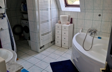 A felső szinten 3 külön bejáratú, tágas lakás található: 2 db 100 m²-es, 3 szoba + nappalis lakás 1 db 50 m²-es, 1 szoba + nappalis Mindhárom lakás külön villanyórával rendelkezik Fűtés: kondenzációs gázkazán, vegyes tüzelésű kazán, álló gázkazán Meleg víz ellátás: gázbojler Fűtés: padlófűtés és radiátor kombinációja.