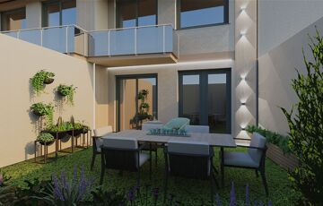 Az ingatlan dupla soros téglafal mentén, garázsoknál összeépített ikerház, így kiváló hő- és hangszigetelést biztosít. A telekrész kb. 150 m², ideális méret a könnyen fenntartható, zöld udvarhoz.
