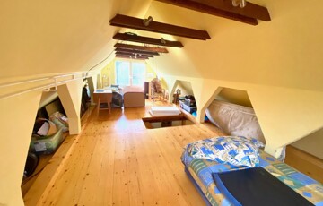 Az alsó és felső szint együttes hasznos alapterülete 90 m², amely 2 szobát, konyhát és fürdőszobát foglal magában. A házhoz egy 18 m²-es terasz is tartozik, valamint egy 6 személyes jakuzzi, amely fedett filagóriában kapott helyet. A jakuzzi teljes körűen szervizelt, felújított gépészettel, a vételár részét képezi.