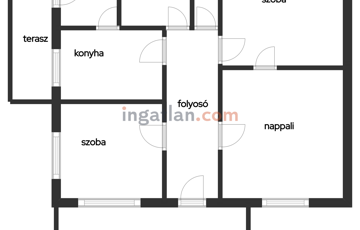 Az ingatlanban 3 szoba, konyha, kamra, és külön fürdőszoba- wc található. A szobák különállóak, a folyósóról nyílnak.
