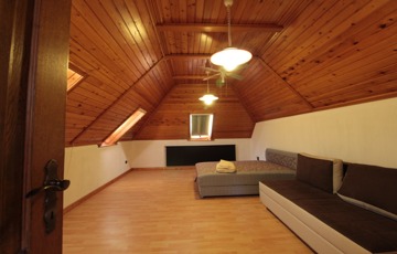 Szuper nagyméretű szoba és vizesblokk biztosítja az elmélyült alkotás vagy a féktelen bulizás életterét.