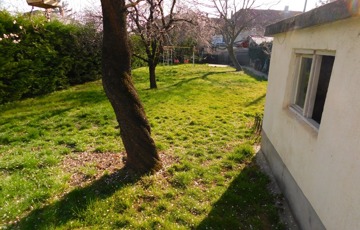 A parkosított kertben gyümölcsfák találhatók, és az öntözéshez külön locsolómérő is van felszerelve.