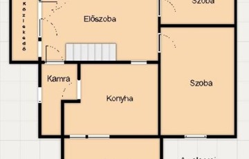 A földszinten található tágas előszobából nyílik a konyha-étkező, két szoba, a tusolós fürdőszoba és a wc. Az előszobát és a két szobát a hangulatos cserépkályha köti össze.