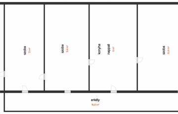A tornác könnyen beépíthető, és ezzel közlekedő folyosó alakítható ki, amely lehetővé teszi a külön bejáratú szobák kialakítását — nagy előny többgenerációs családnak vagy rugalmas elrendezést keresőknek.